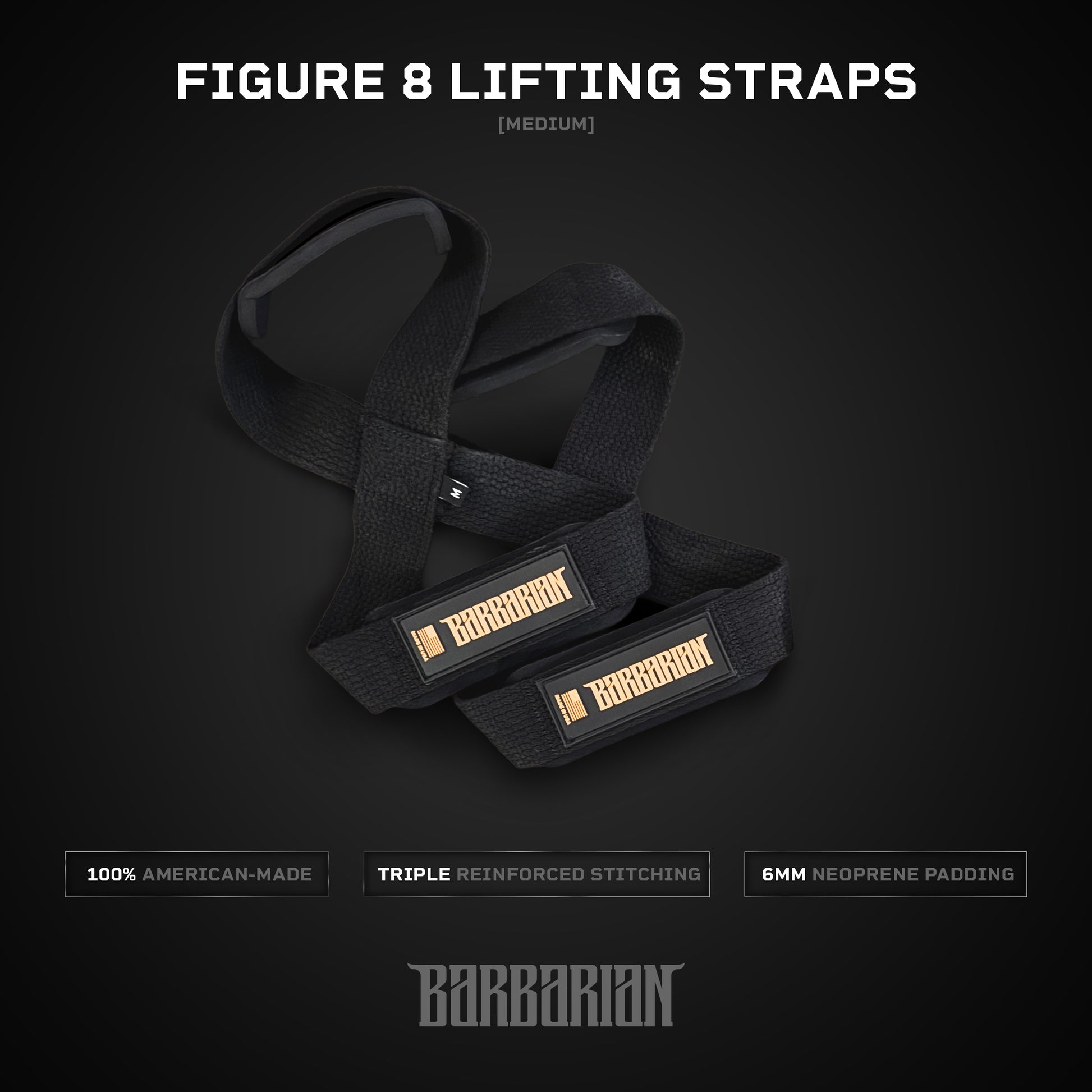 Crush your heaviest deadlifts, rows, and strongman lifts with the Figure 8 Lifting Straps, built for warriors who demand unrelenting grip strength. Crafted with the same American-made quality as our renowned Conductor Series Lifting Straps, these Figure 8s are forged from our premium American-made cotton webbing with triple-stitched nylon seams for durability you can trust. Assembled in North Georgia with hardcore pride, their closed-loop design locks your wrists to the bar, delivering ironclad control to power through your toughest sets. Available in M, L, and XL sizes (refer to our sizing chart), these straps are your go-to for max-effort pulls. Pair of two. Hand wash and air dry for longevity. Unleash your inner Barbarianโadd to cart now!