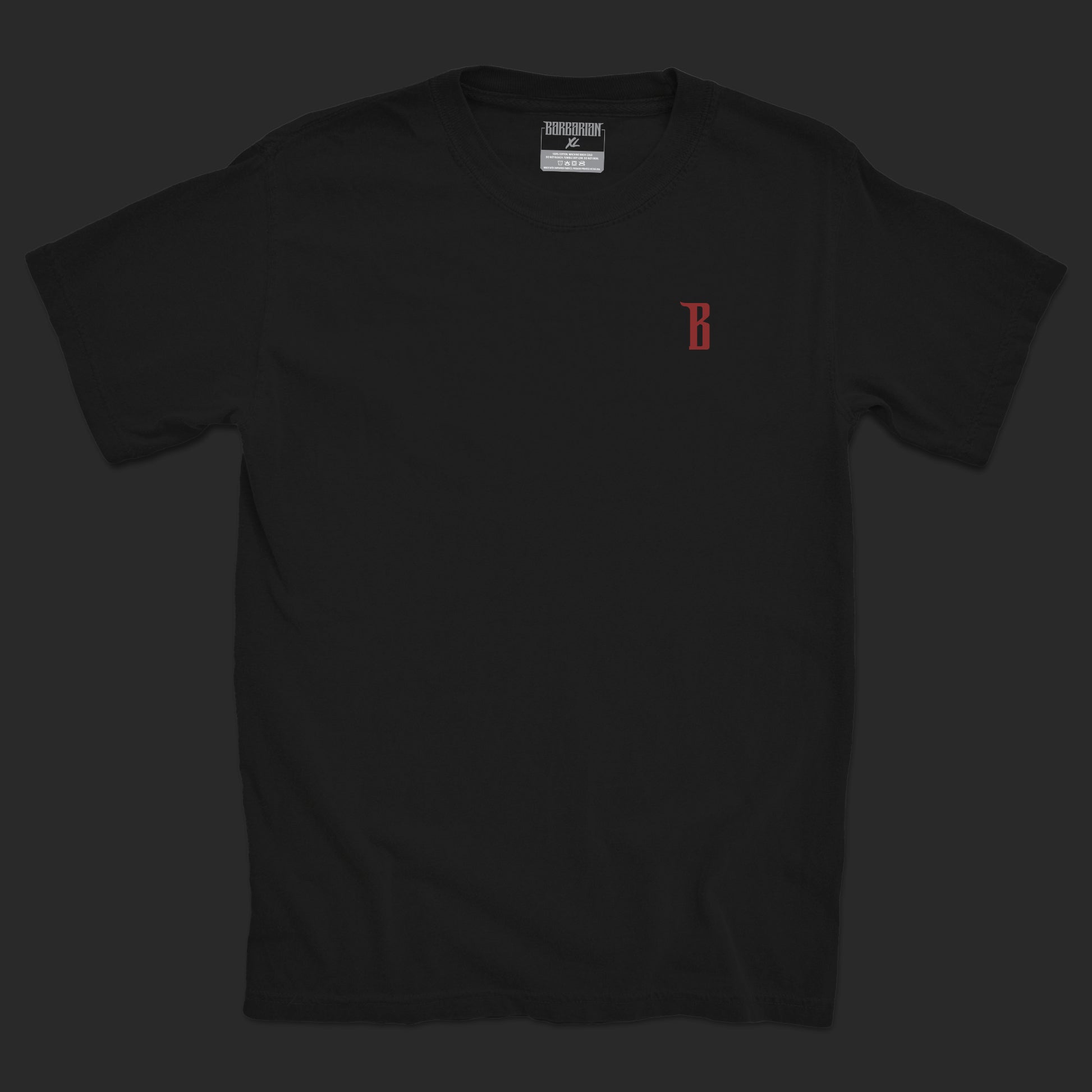 Printed on a 6.1 oz. 100% ring-spun cotton tee with a vintage dye process, giving it that "lived in" look and feel. Front left chest "B" icon with an oversized, distressed print across the back.