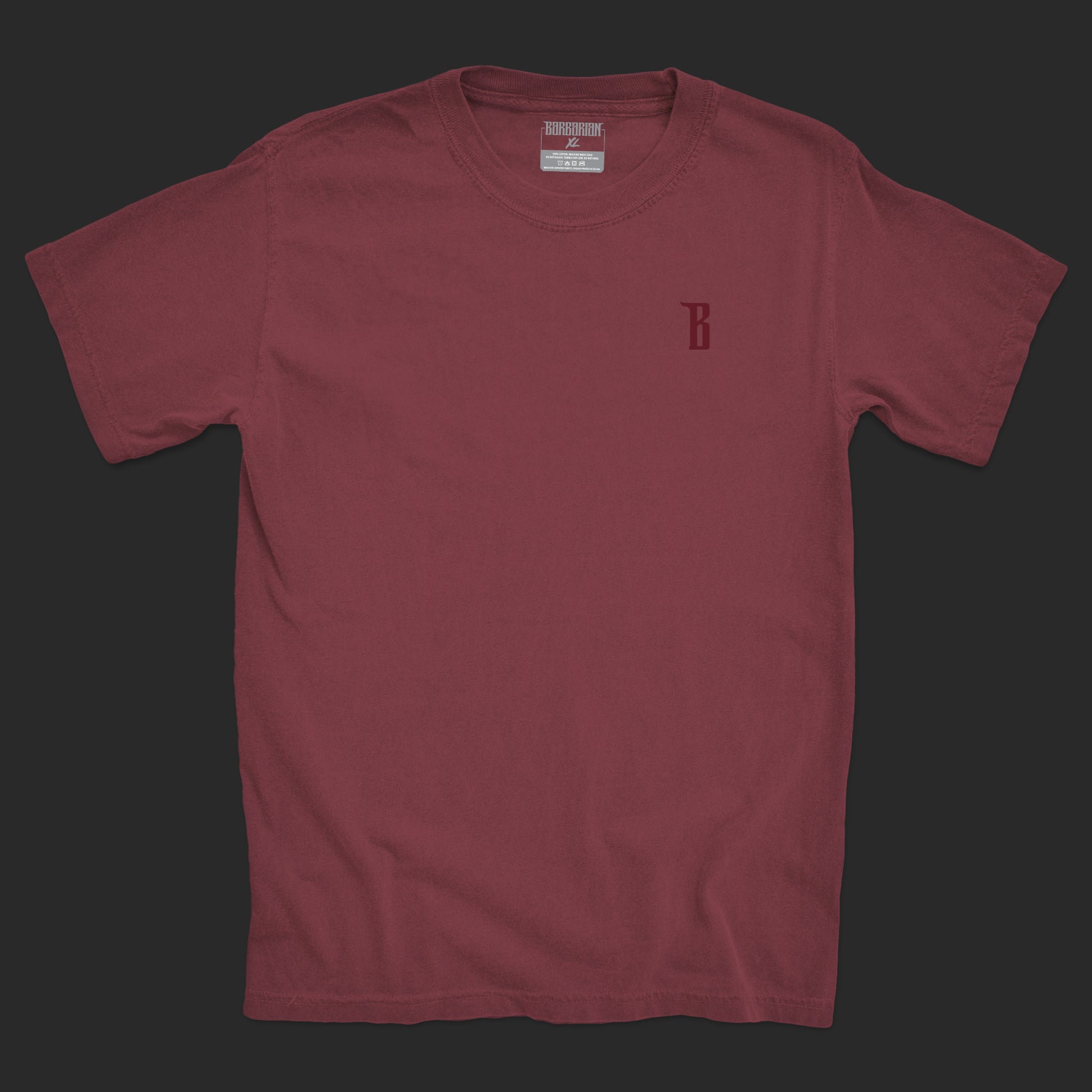 Printed on a 6.1 oz. 100% ring-spun cotton tee. Front left chest "B" icon with an oversized, tone-on-tone hand-lettered print on the back. Artwork is printed and scaled based on shirt size. The larger the shirt, the larger the prints!